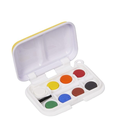 Petite boîte de peinture au format Pocket avec huit couleurs à base d'eau et un petit pinceau. Disponible en trois modèles de Noël. Un cadeau céles...